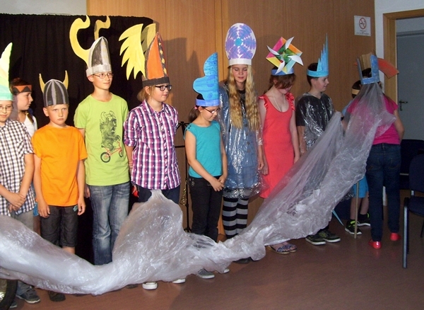 Die Klasse 2b hat diese 45-minütige Aufführung vom 5. Januar bis 01. Juni vollständig erarbeitet und zweimal gezeigt: zum Tag der offenen Tür ihrer Schule und als Gastaufführung an der RS "Heinrich Hertz" in Ilmenau.